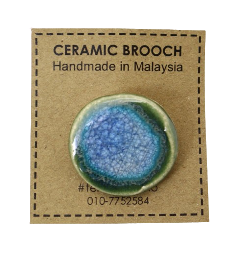 1. BAHAN DARI TANAH LIAT DIJADIKAN BROOCH BERBENTUK BULAT DAN DIDATANGKAN DENGAN PIN
