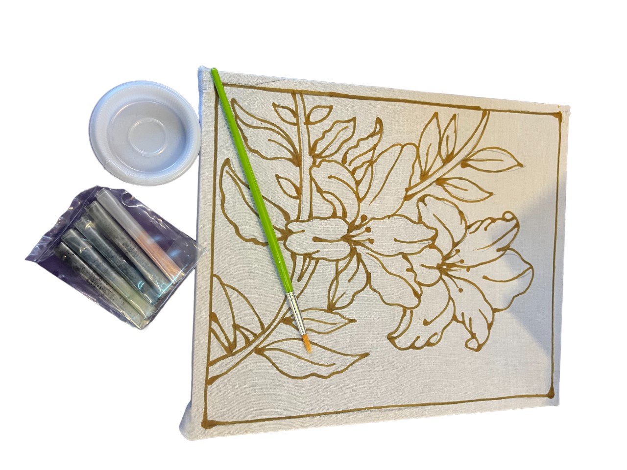 UNCOLOURED BATIK PAINTING, 01 CLOUR BRUSH, 04 PACK BATIK COLOUR POWDER (GREEN,