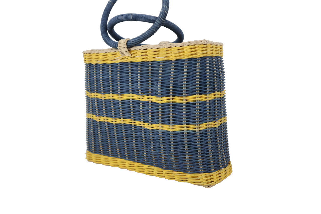 BAKUL YANG DIPERBUAT DARIPADA ROTAN PULUR DAN DILENGKAPI DENGAN TANGKAI,