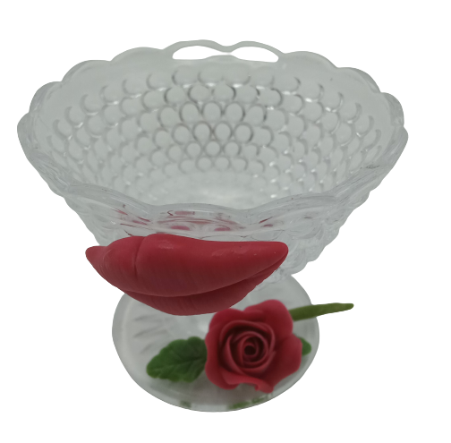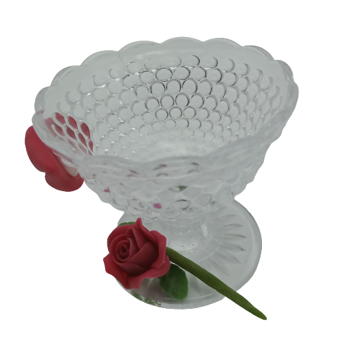 PASU DARI GELAS. BUNGA DARI AIR DRY CLAY. KEGUNAAN UNTUK HIASAN DAN CENDERAMATA. SAIZ: T-8CM X L-7CM