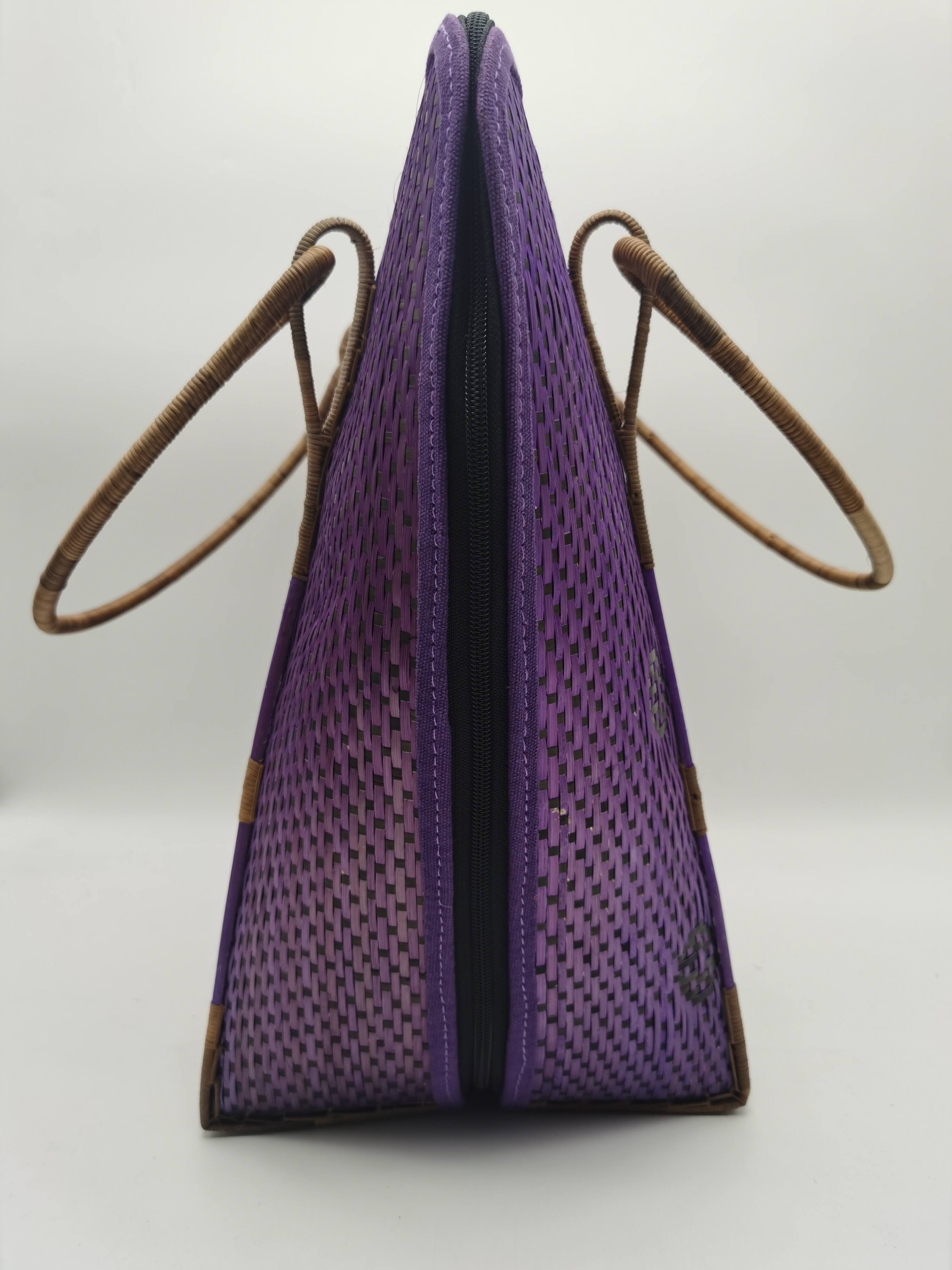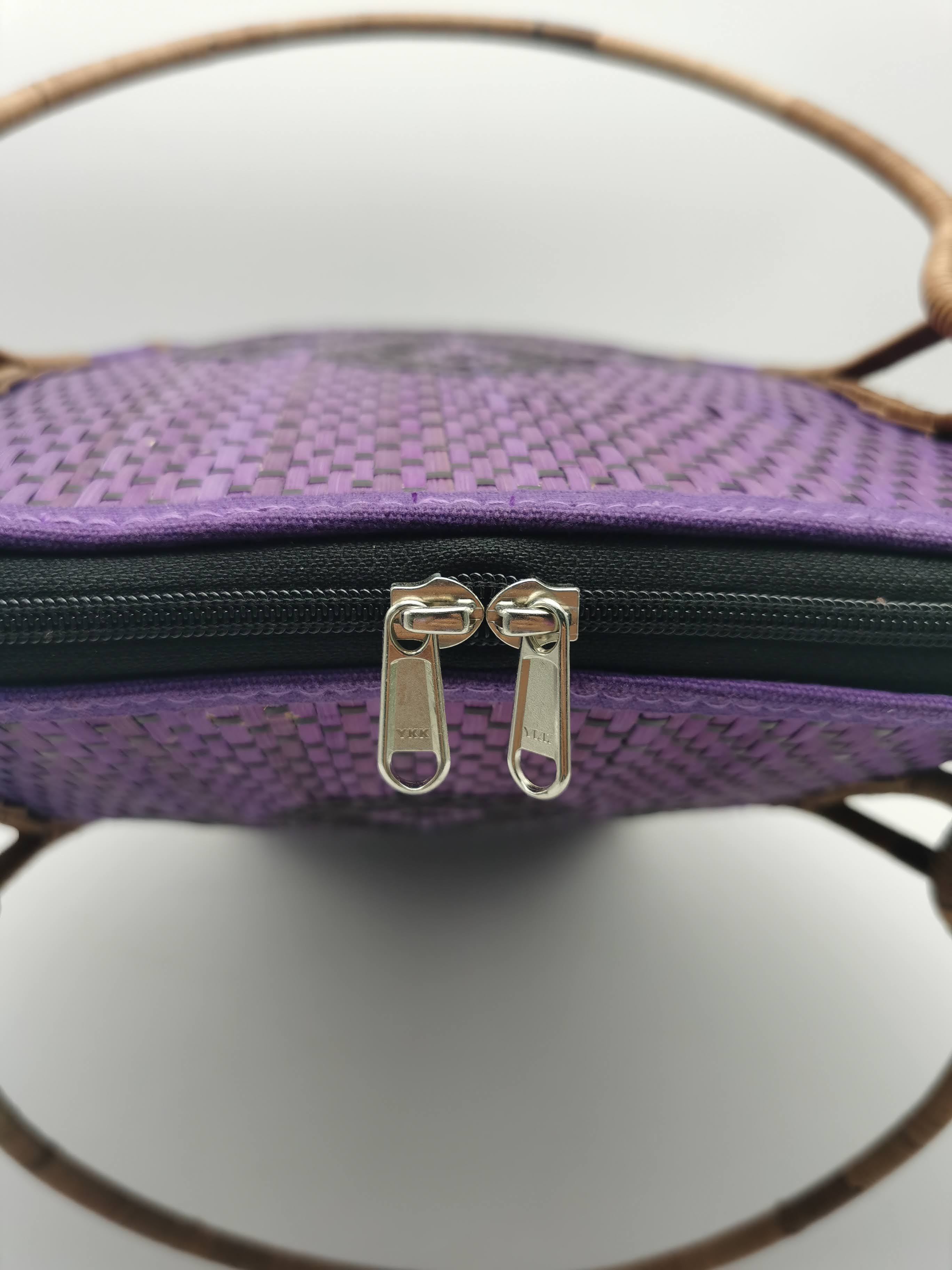 2. WITH ZIP FINISHING AROUND THE BAG AND BAG HANDLE FROM INTERLINKED RATTAN