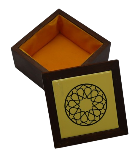 2. KOMBINASI KOTAK KAYU DAN TILES YANG DIUKIR DENGAN CORAK GEOMETRIK