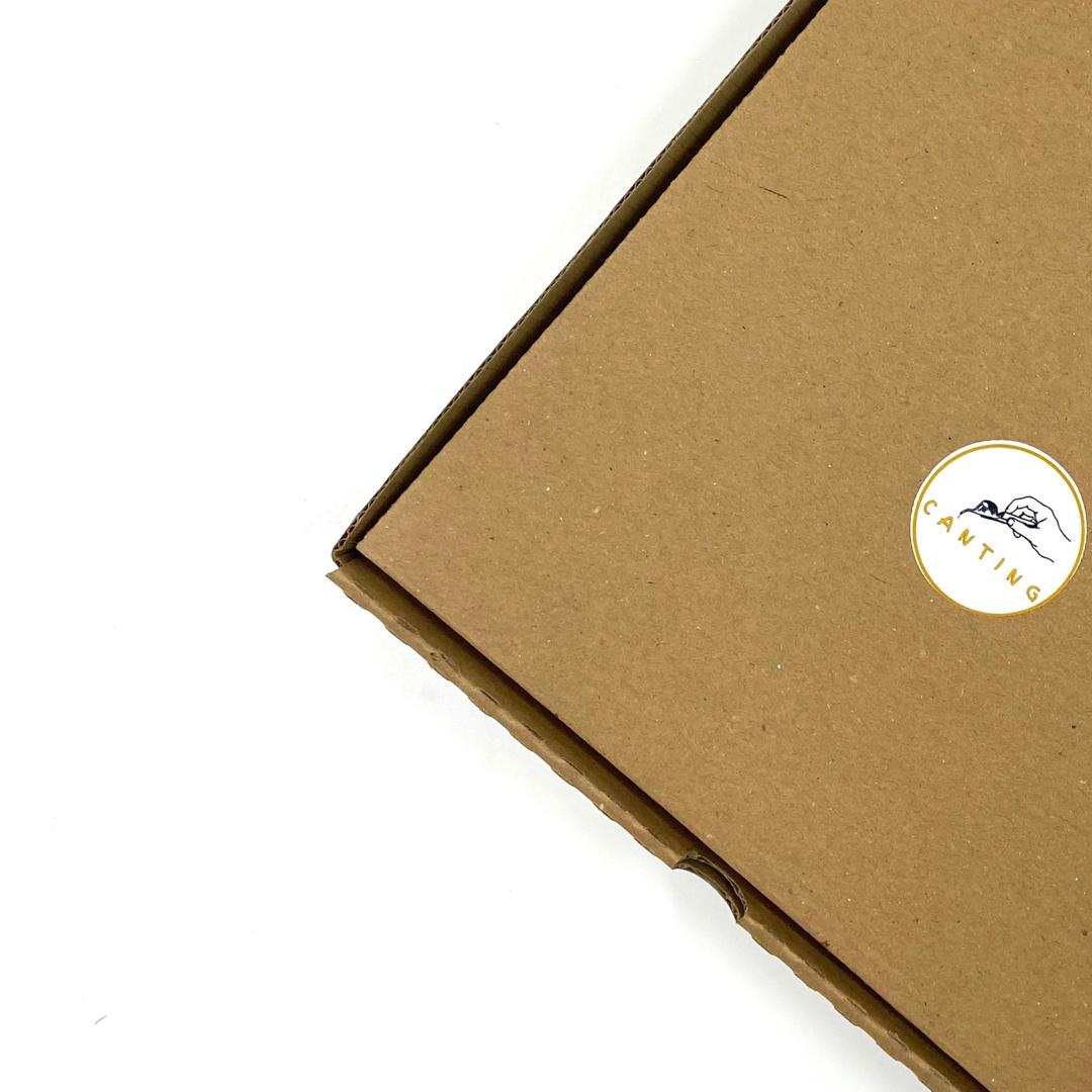 4) SETIAP KOTAK MENGANDUNGI / EVERY BOX CONTAIN : 01 HAND DRAWN UNCOLOURED BATIK PAINTING, 01 COLOUR PALLET, 01 CLOUR BRUSH, 04 BOTTLES BATIK COLOUR (BLACK, BLUE, RED, YELLOW)