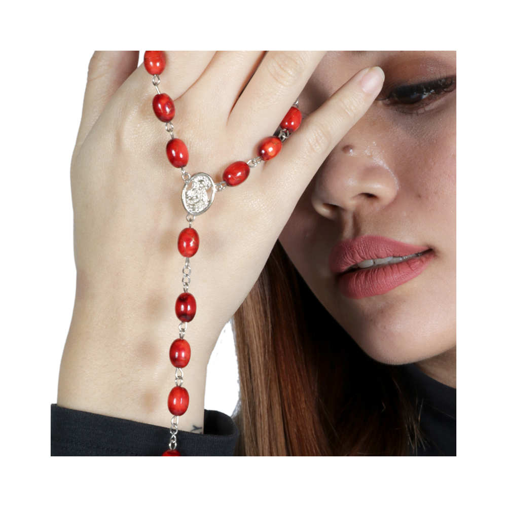 1) DIPERBUAT DARIPADA 15 BIJI MANIK BATU BERWARNA MERAH YANG DISAMBUNG MENGGUNAKAN STAINLESS STEEL