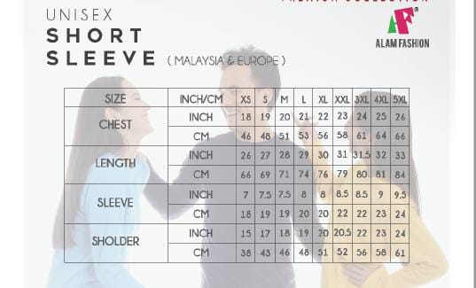 2. SAIZ : XS-5XL (IZINKAN BEBERAPA CM PERBEZAAN )