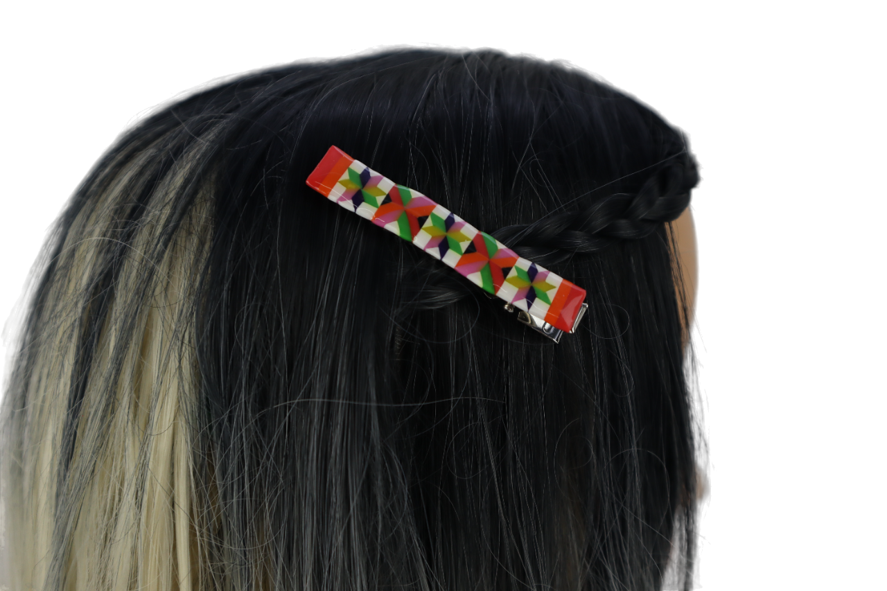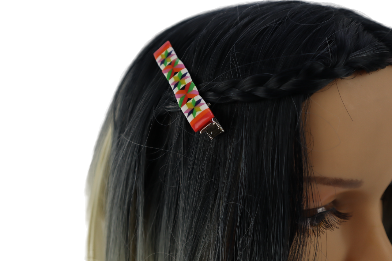 UNSUR CORAK LINANGKIT HASIL TANGAN YANG DICANTUM SECARA HALUS DAN TELITI DAN DIPASANG KE ATAS KLIP RAMBUT UNTUK DIPAKAI SEBAGAI KLIP RAMBUT ATAU KLIP TALI LEHER