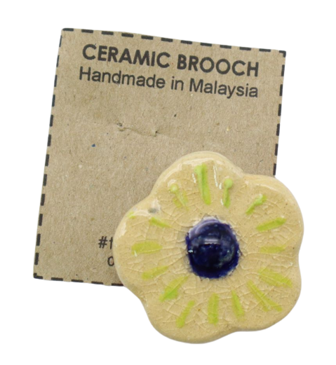 BAHAN DARI TANAH LIAT DIJADIKAN BROOCH BERBENTUK BUNGA DAN DIDATANGKAN DENGAN PIN. KEGUNAAN SEBAGAI BAHAN ALTERNATIF PENCANTUM TUDUNG DENGAN BAJU. BROOCH INI JUGA SEBAGAI AKSESORI KEPADA TUDUNG . SESUAI DIJADIKAN CENDERAMATA DAN HADIAH. SAIZ= LEBAR-3.5CM