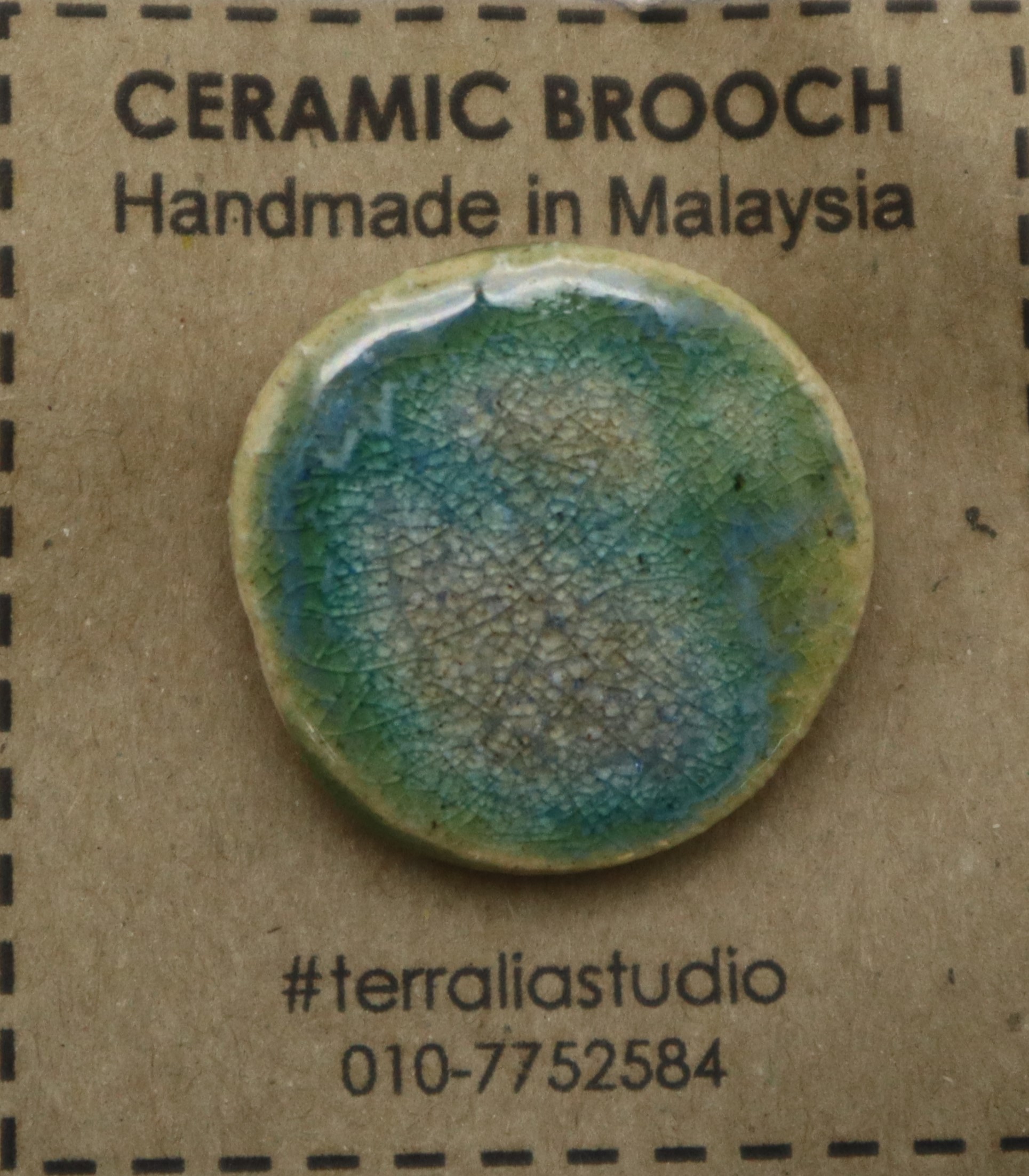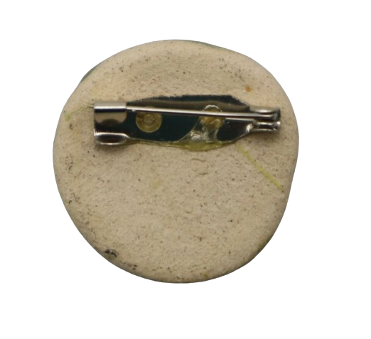 1. BAHAN DARI TANAH LIAT DIJADIKAN BROOCH BERBENTUK BULAT DAN DIDATANGKAN DENGAN PIN