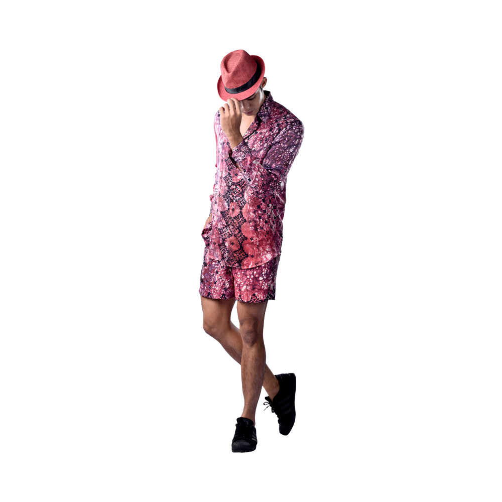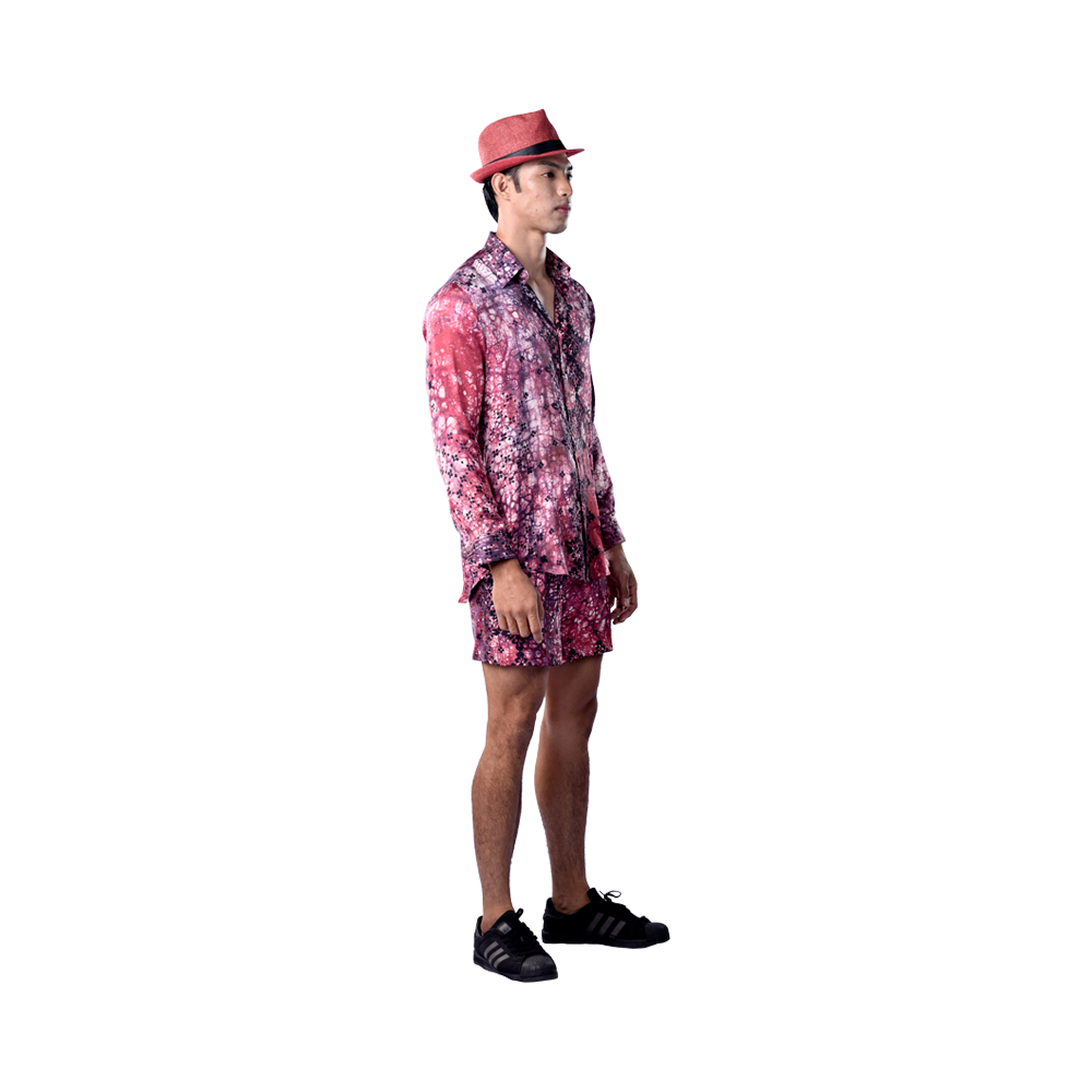 Long sleeve shirt with matching Bermuda in clay batik. Designed for the modern man who’s all about making a statement and expressing his true creativity.