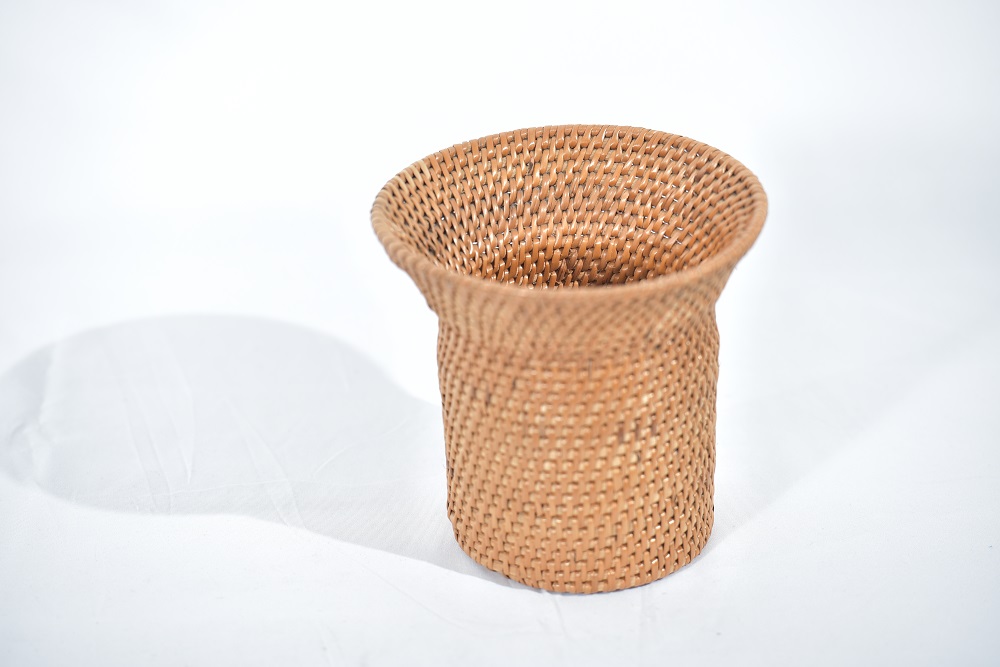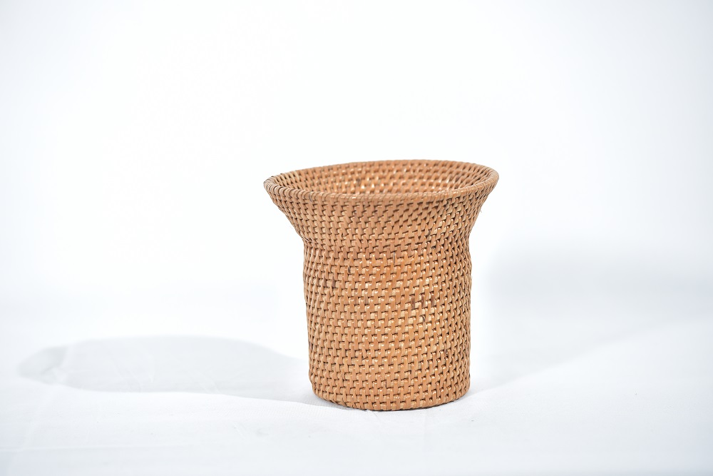 | BEKAS PASU PERHIASAN YANG DIPERBUAT DARI ANYAMAN RIBU-RIBU YANG MENAMPILKAN BENTUK MODEN DIGABUNGKAN DENGAN ANYAMAN TRADISIONAL. |