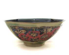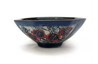 A versatile and beautifully rendered vessel featuring red blossoms. This bowl comes in white or green to suit any decor scheme.