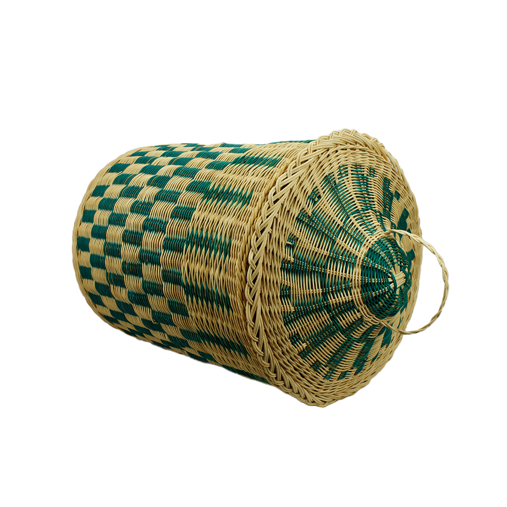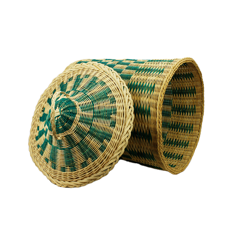 5. MENGGUNAKAN ROTAN PULUR, YANG DIANYAMAN MENGIKUT REKAAN YANG BERBENTUK GEOMETRI