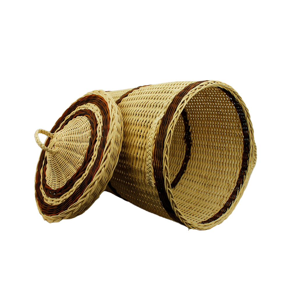 5. MENGGUNAKAN ROTAN PULUR, YANG DIANYAMAN MENGIKUT REKAAN YANG BERBENTUK GEOMETRI