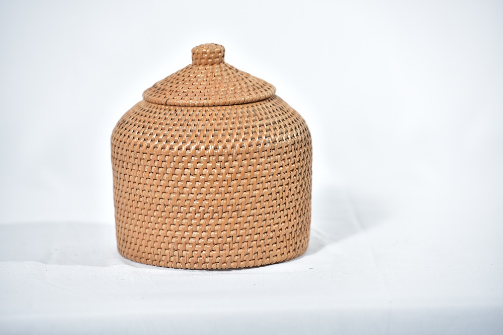 BEKAS 2. DILENGKAPI DENGAN PENUTUP DI BAHAGIAN ATAS 3.BEKAS BERWARNA NATURAL RIBU-RIBU. |
