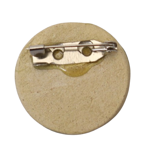 1. BAHAN DARI TANAH LIAT DIJADIKAN BROOCH BERBENTUK BULAT DAN DIDATANGKAN DENGAN PIN