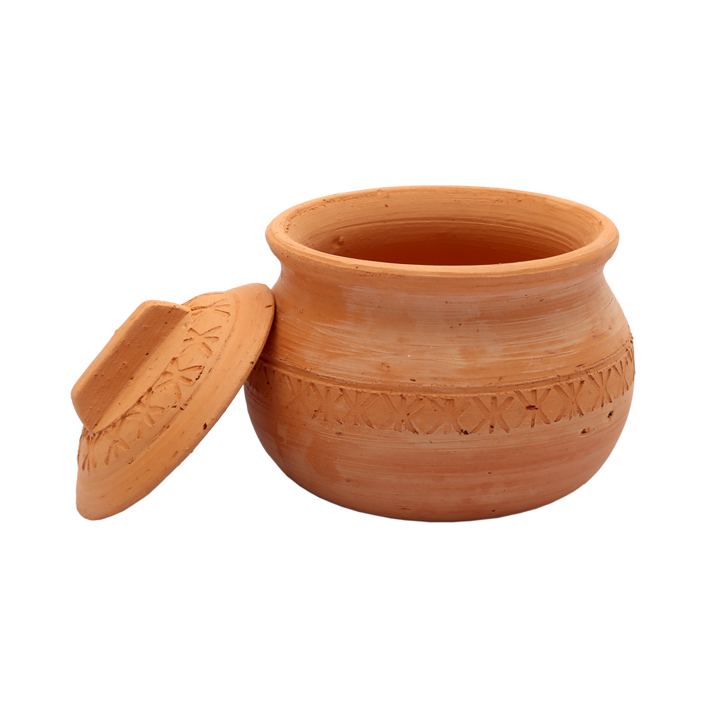 CERAMIC EARTH POT IS USED TO BE DECORATED AND A PLACE TO STORE FOOD. CAN