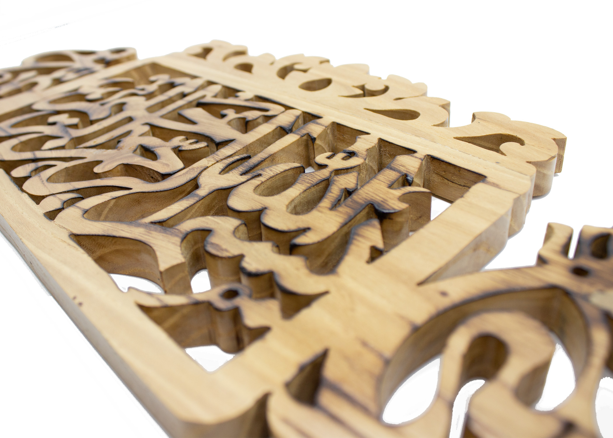 BAHAN DARI KAYU JATI. MENGANDUNGI KHAT "BISMILLAHIRRAHMANNIRRAHIM". KEGUNAAN SEBAGAI HIASAN. SAIZ:: P-26CM X L-12CM