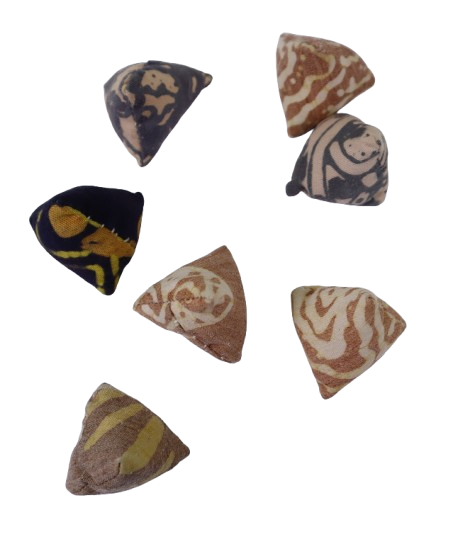3. BEG KECIL BERZIP YANG BERBENTUK SEGITIGA DIHASILKAN DARIPADA BAHAN KAIN KAPAS BERCORAK BATIK