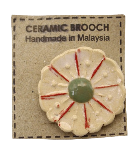 1. BAHAN DARI TANAH LIAT DIJADIKAN BROOCH BERBENTUK BUNGA DAN DIDATANGKAN DENGAN PIN