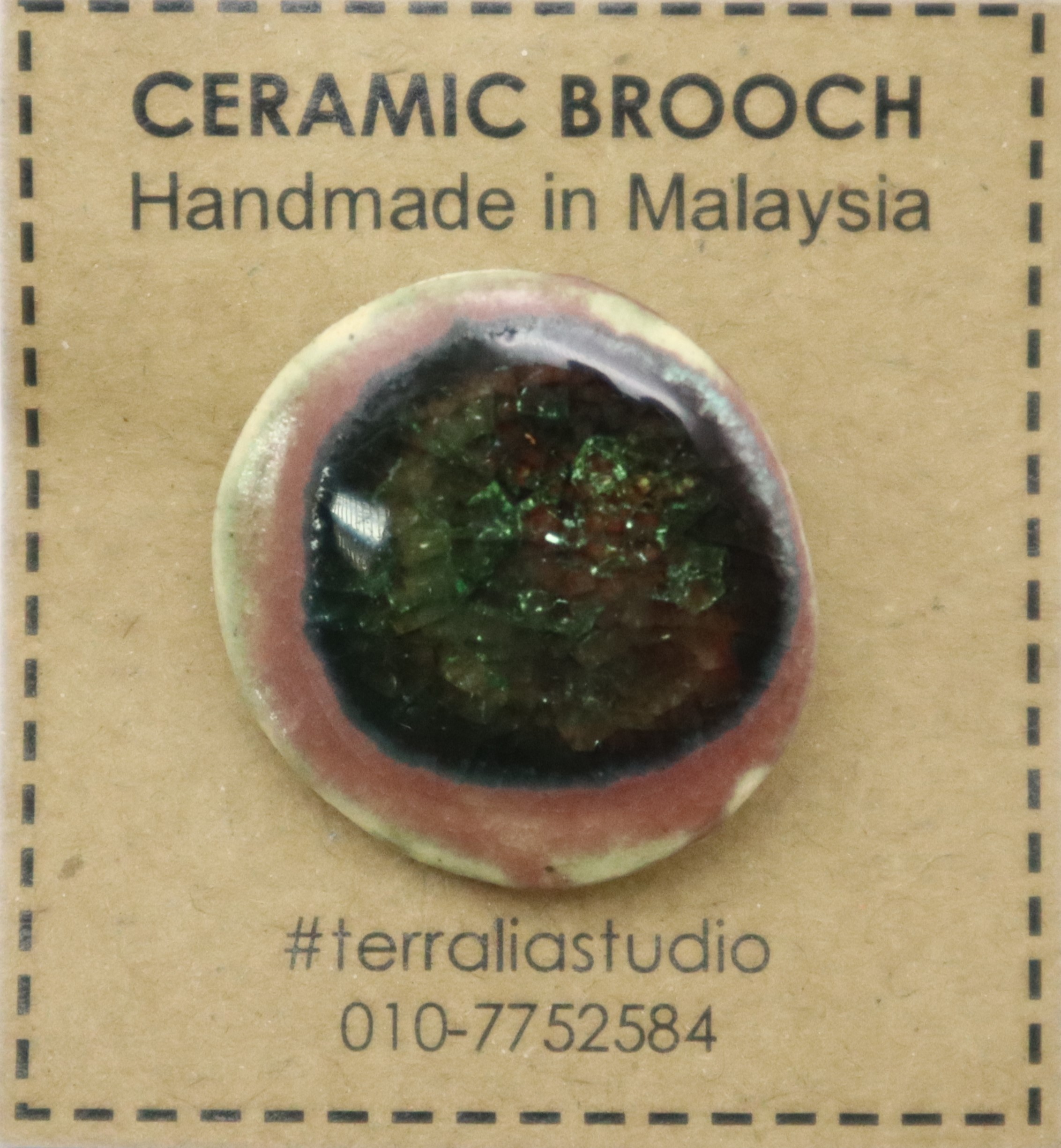 1. BAHAN DARI TANAH LIAT DIJADIKAN BROOCH BERBENTUK BULAT DAN DIDATANGKAN DENGAN PIN