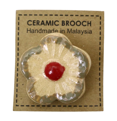 1. BAHAN DARI TANAH LIAT DIJADIKAN BROOCH BERBENTUK BUNGA DAN DIDATANGKAN DENGAN PIN