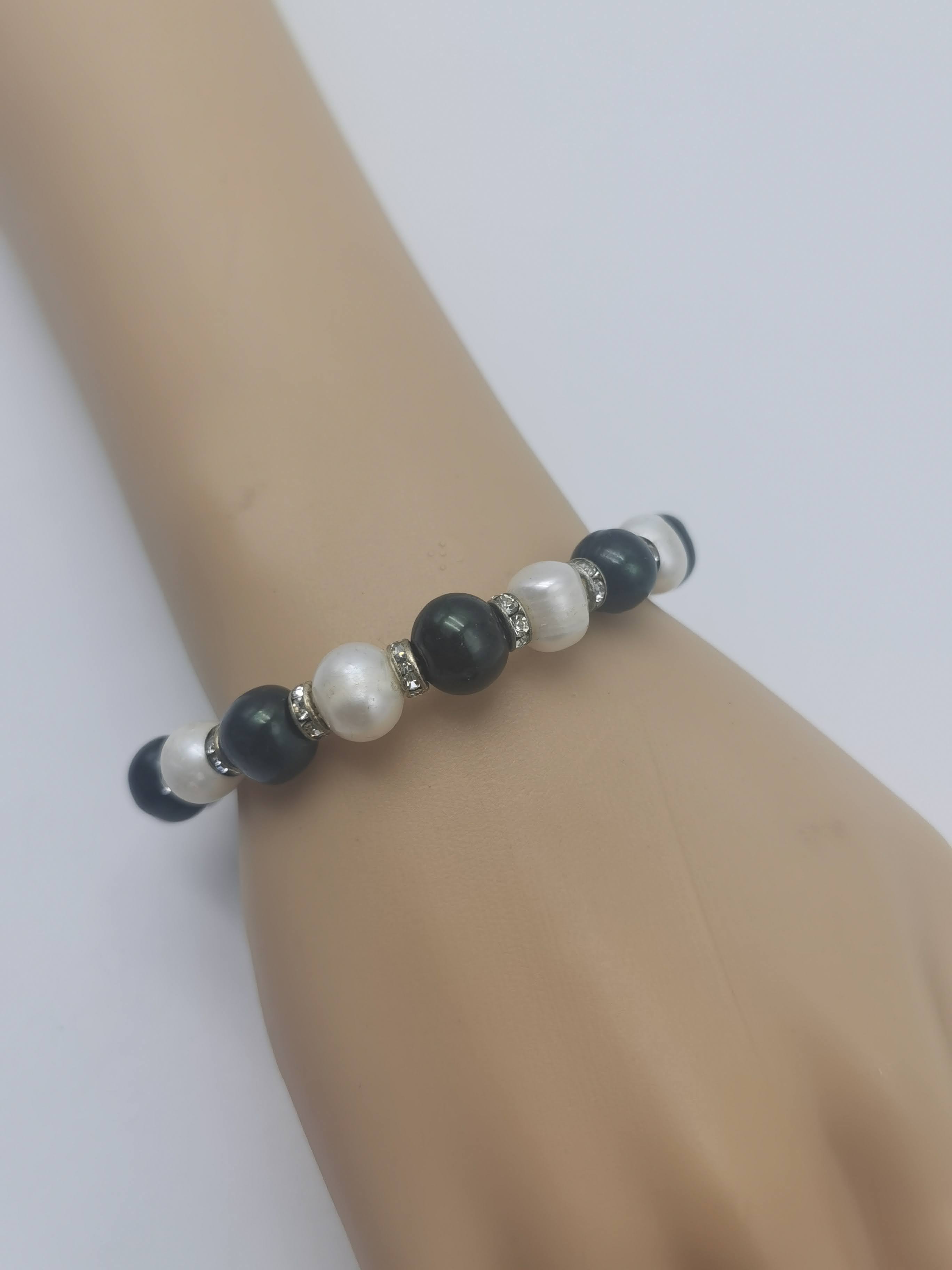 GELANG MUTIARA HITAM + PUTIH 10 MM